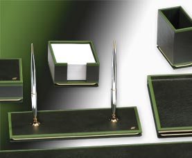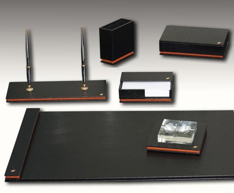 This is a classic and timeless leather deskset. I ordered it for my office and could not be happier with the purchase. It''s a high-quality handcrafted piece of art. Very solid leather. Beautiful color. I already received multiple wows from clients and colleagues who saw the set on my desk. Fast Fed