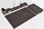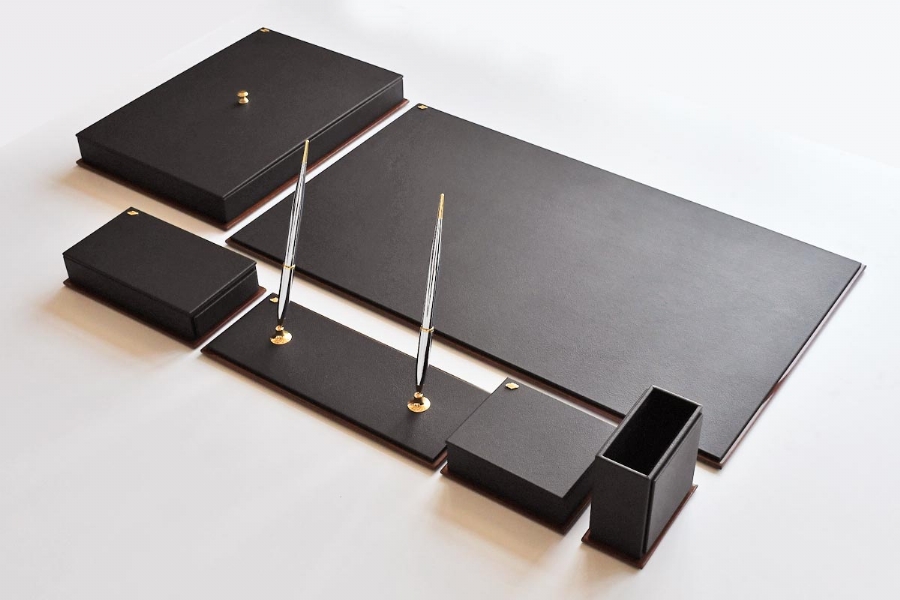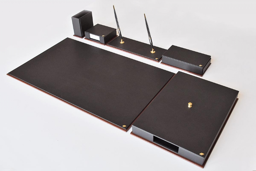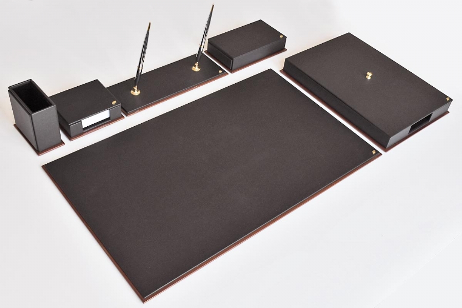 Klasik İtalyan deri ve Ağaç kaplamanın en güzel örneklerinden biri olan bu sümen takımı; kusursuz el işçiliği ve özel cilası ile ofisinizdeki zerafeti yansıtmaktadır. Klasik ofisler için hazırlanmış olan bu lüks masa setlerinin 40 değişik deri rengi ve 20 değişik ağaç kaplama seçeneği bulunmaktadır.