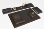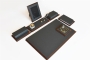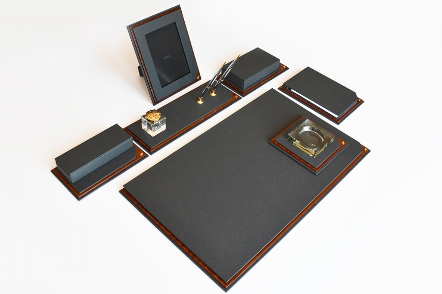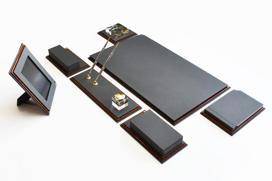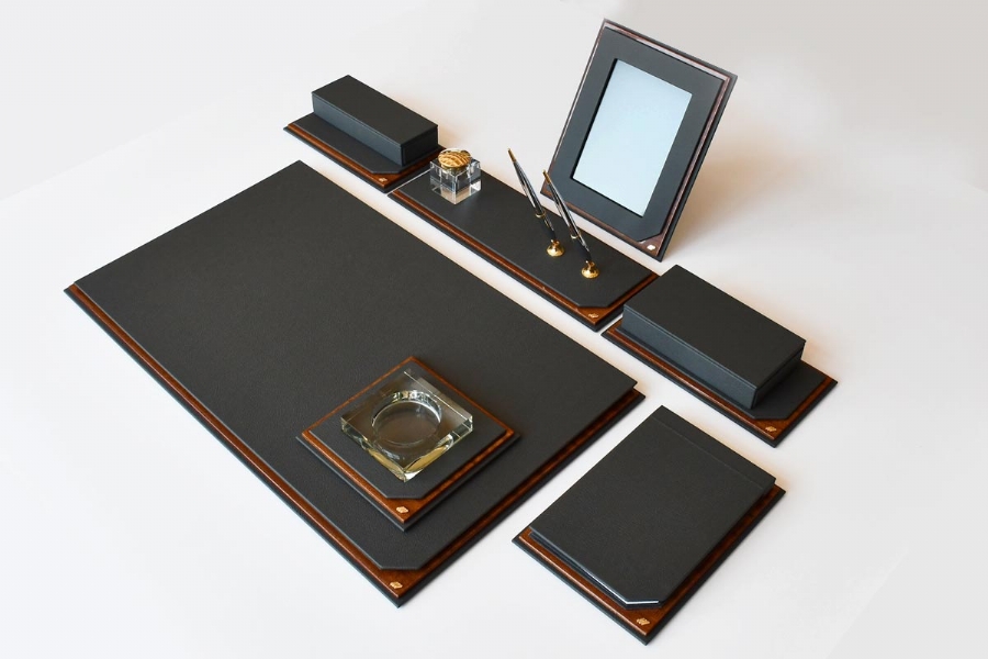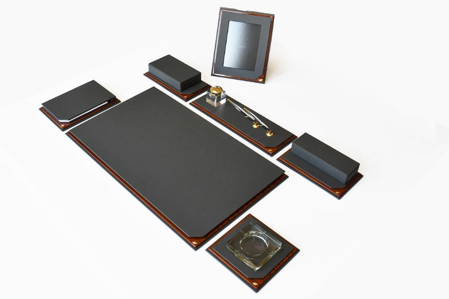 Klasik İtalyan deri ve Ağaç kaplamanın en güzel örneklerinden biri olan bu sümen takımı; kusursuz el işçiliği ve özel cilası ile ofisinizdeki zerafeti yansıtmaktadır. Klasik ofisler için hazırlanmış olan bu lüks masa setlerinin 40 değişik deri rengi ve 20 değişik ağaç kaplama seçeneği bulunmaktadır.