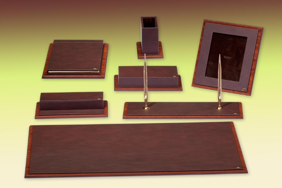 Klasik İtalyan deri ve Ağaç kaplamanın en güzel örneklerinden biri olan bu sümen takımı; kusursuz el işçiliği ve özel cilası ile ofisinizdeki zerafeti yansıtmaktadır. Klasik ofisler için hazırlanmış olan bu lüks masa setlerinin 40 değişik deri rengi ve 20 değişik ağaç kaplama seçeneği bulunmaktadır.