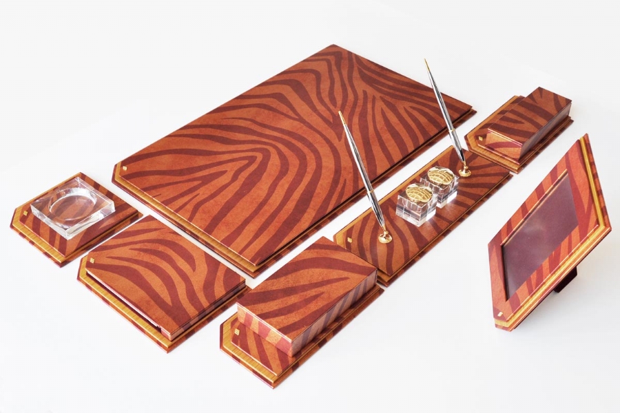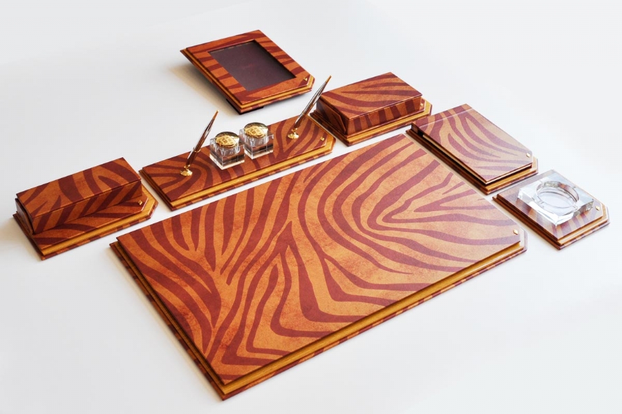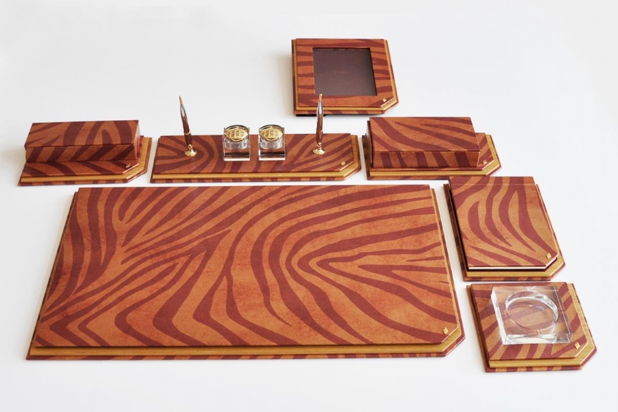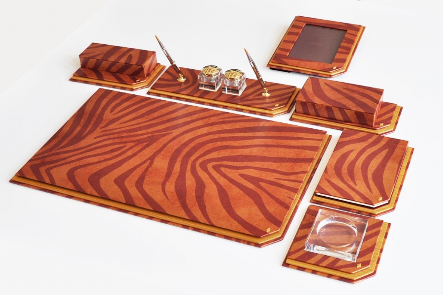 Klasik İtalyan deri ve Ağaç kaplamanın en güzel örneklerinden biri olan bu sümen takımı; kusursuz el işçiliği ve özel cilası ile masanızdaki zerafet olacaktır. Klasik ofisler için hazırlanmış olan bu lüks masa setlerinin 40 değişik deri rengi ve 20 değişik ağaç kaplama seçeneği bulunmaktadır.