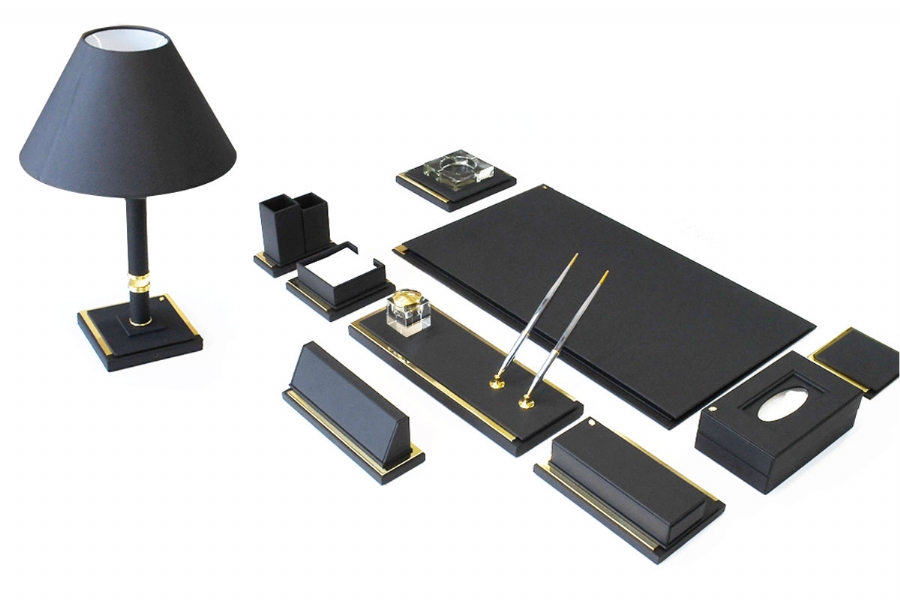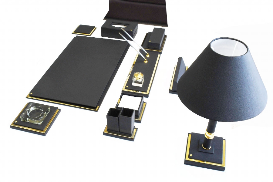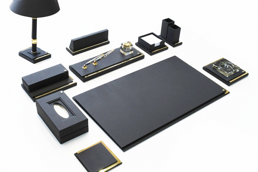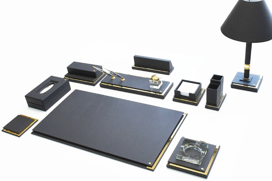 Klasik İtalyan deri ve altın kaplamanın en güzel örneklerinden biri olan bu sümen takımı; kusursuz el işçiliği ve özel derisi ile zerafeti yansıtmaktadır. Klasik ofislerin vazgeçilmez aksesuarları olan bu lüks masa setlerinin kırk değişik renk seçeneği bulunmaktadır.